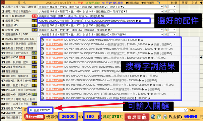 理論說再多,不如實際操作一次。我們用一個2025年的夢幻組合「AMD R7 7800X3D + NVIDIA RTX 5070」來示範估價流程,讓你秒懂怎麼配出自己的電腦菜單。