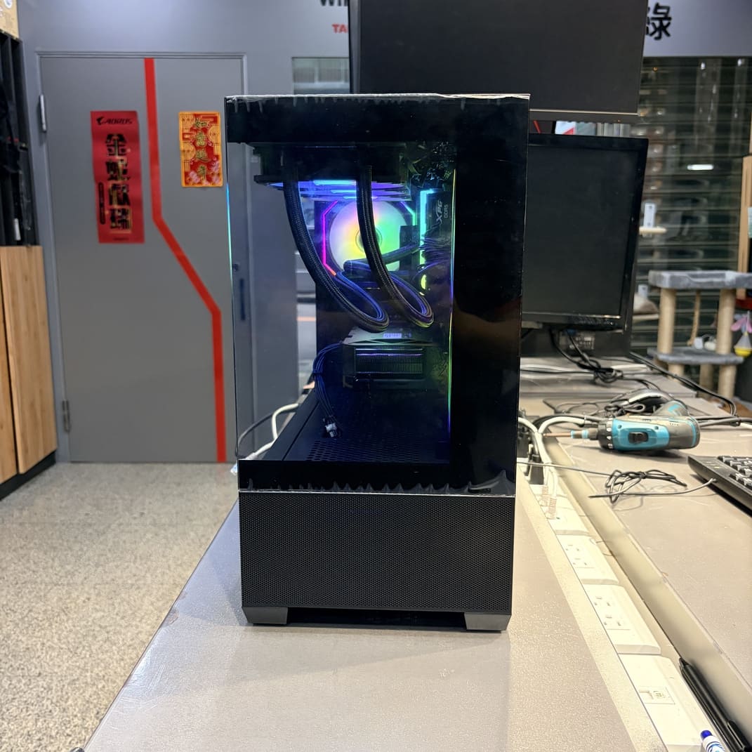 圖片說明:這就是完工後的整體視角。可以看到酷碼 Elite 490 的全景玻璃設計,讓內部的 ARGB 燈效一覽無遺。我們特別將風扇燈光同步調整為幻彩模式,讓視覺效果更為豐富。