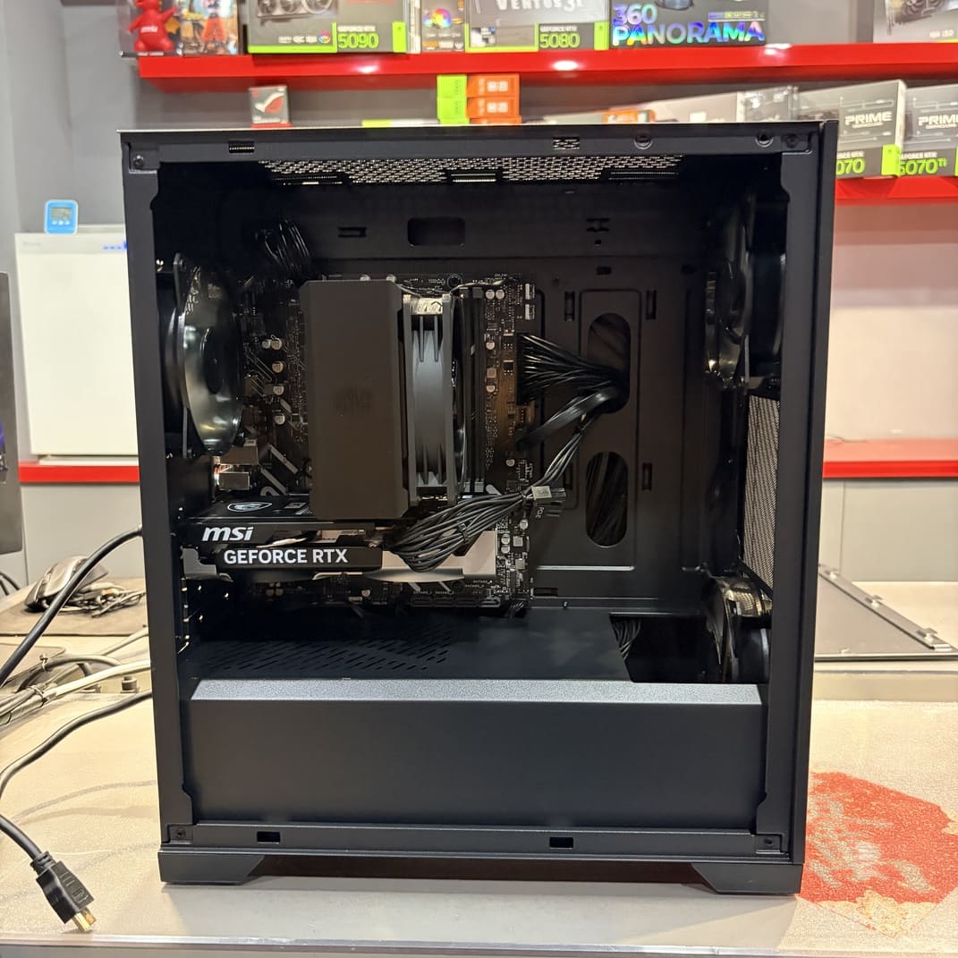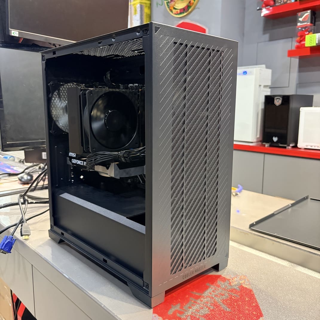 我們特別為這台主機搭配了 酷碼 Hyper 212 Black 塔式散熱器,取代了原廠送的普通風扇。Hyper 212 的 4 根純銅導熱管能迅速將 CPU 廢熱帶走。配合酷碼 Elite 301 Lite 機殼內建的風道設計,熱空氣能直線排出。在一般文書上網時,電腦幾乎是零噪音;即使在滿載打遊戲時,風扇轉速提高,也只會有輕微的氣流聲,絕對不會有傳統舊電腦那種擾人的高頻起飛聲。