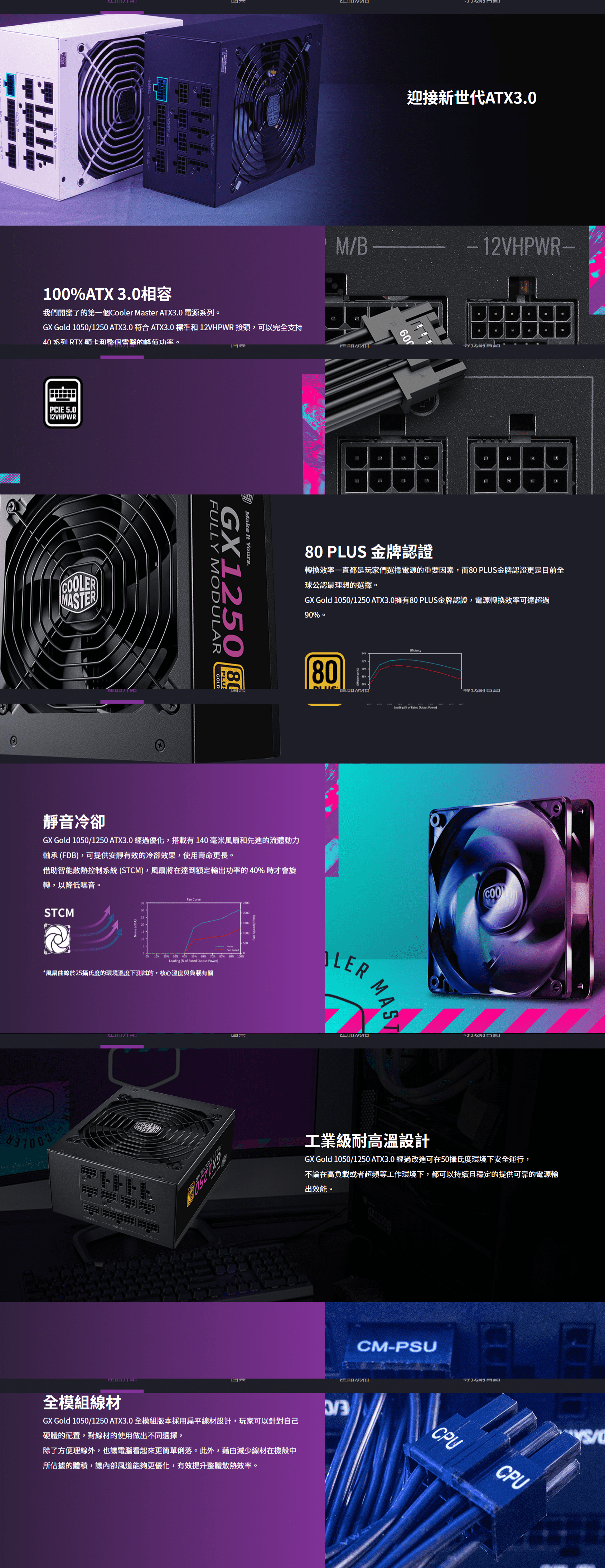 酷碼 CoolerMaster GX GOLD 1250 ATX3.0 全模組 80 PLUS 金牌認證 ATX 電源供應器